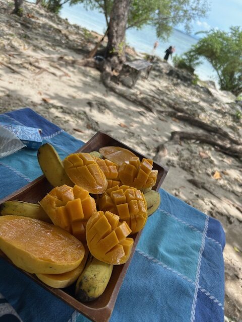 シュノーケルをして船に上がると、知らない若者が船に乗ってきて貝も売りにきます。停止している船をめがけて小さいボートで売りにきます♪人それぞれですが、本当に美味しくないので買わないで頂きたい(笑)